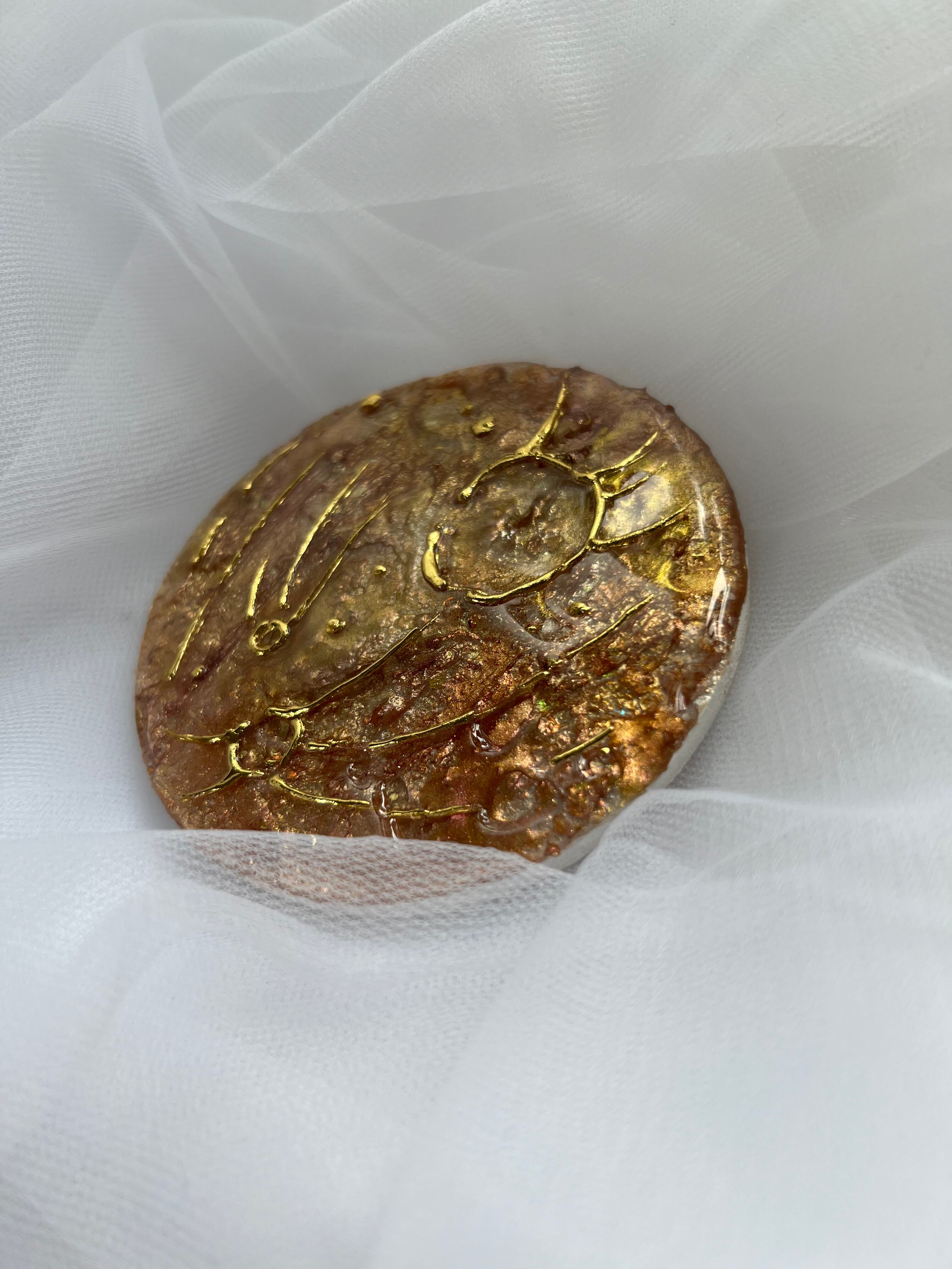 オレンジゴールドとピンクゴールドのパウダーで奥行き感を出し、柔らかく光沢感のある月に仕上げています。