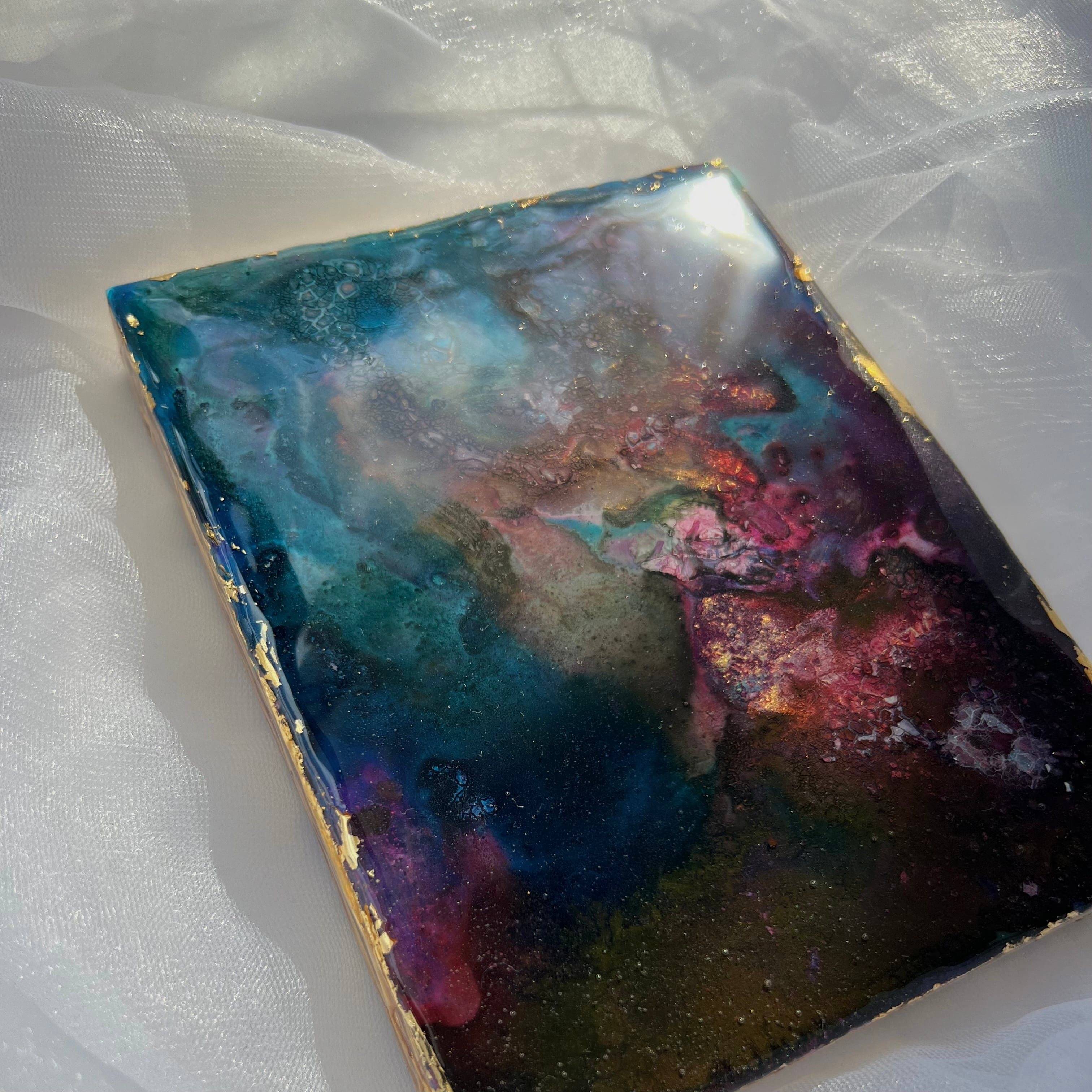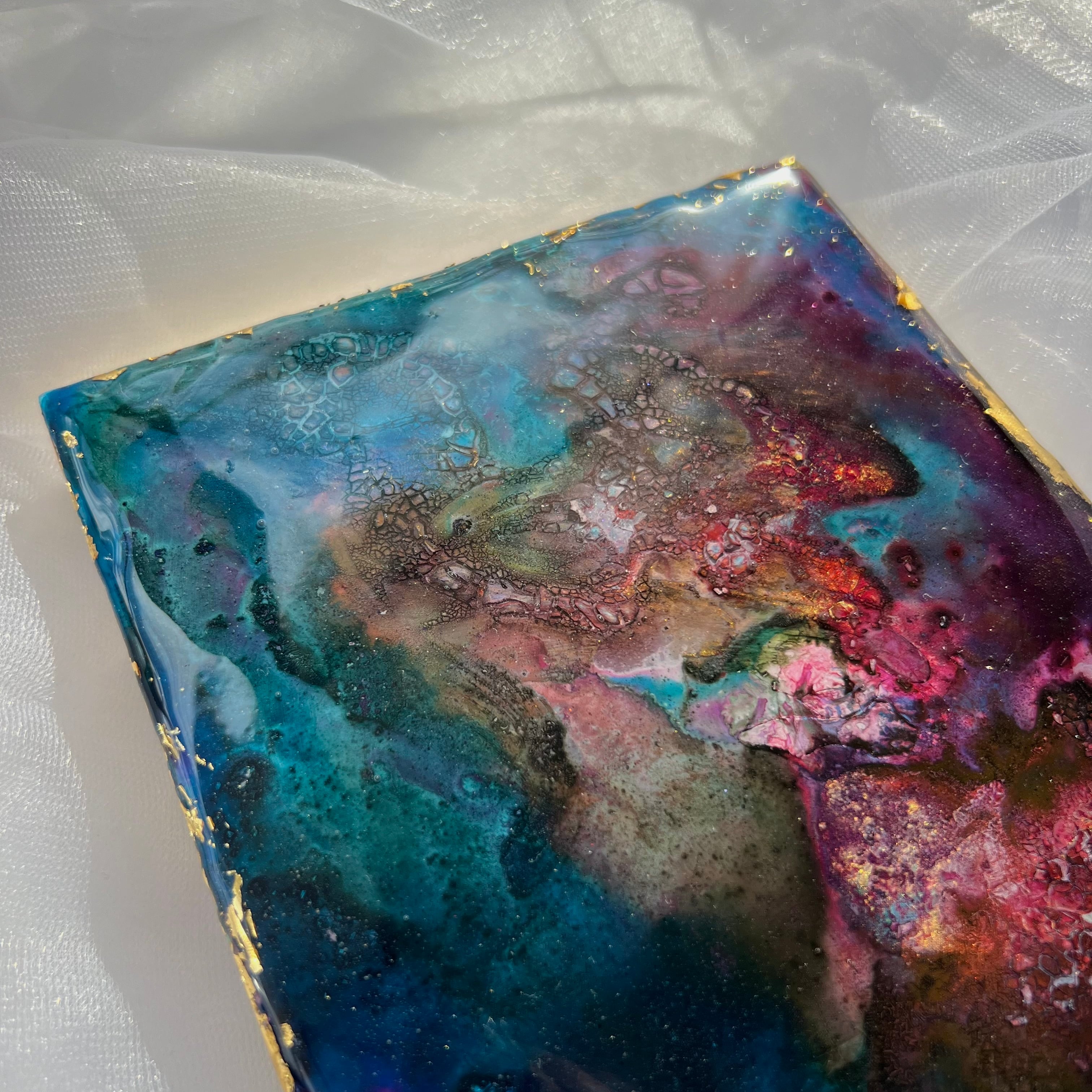 【素材】アクリル絵の具、ボンド、盛り上げ材、ラメ、二液性レジン、金箔