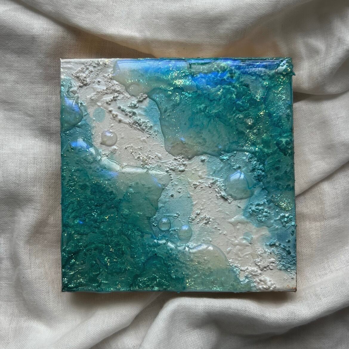 【素材】木、水彩絵の具、アクリル画材、接着剤、レジン