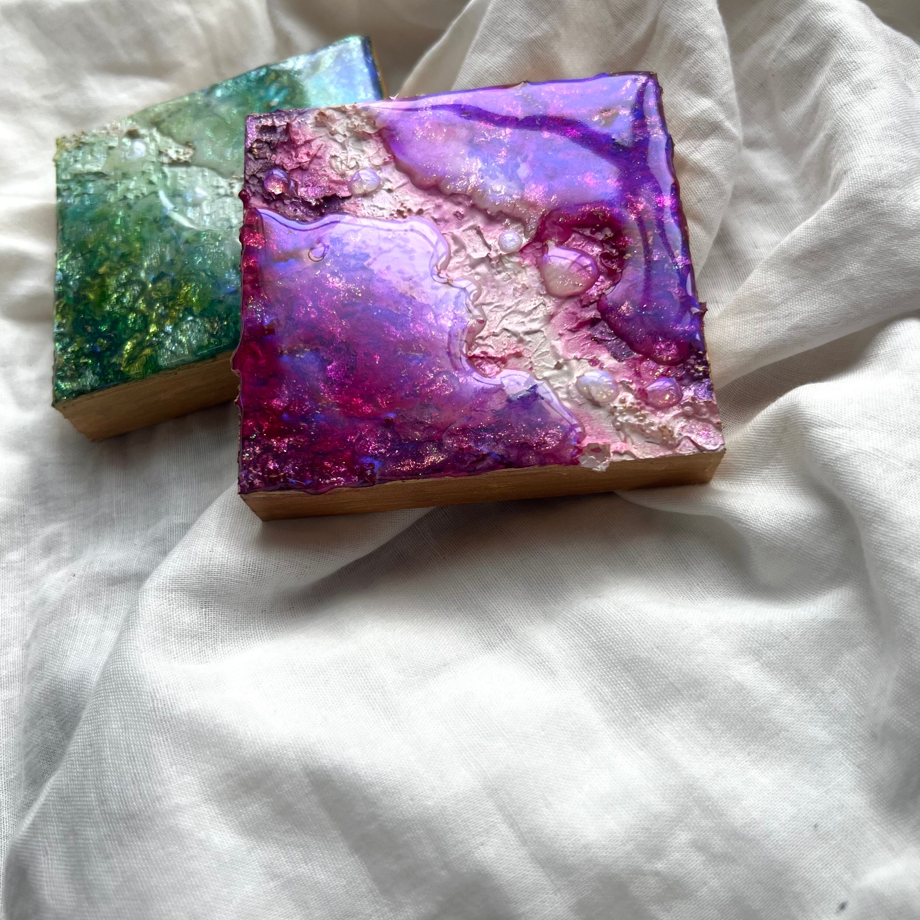 【素材】木、水彩絵の具、アクリル画材、接着剤、レジン
