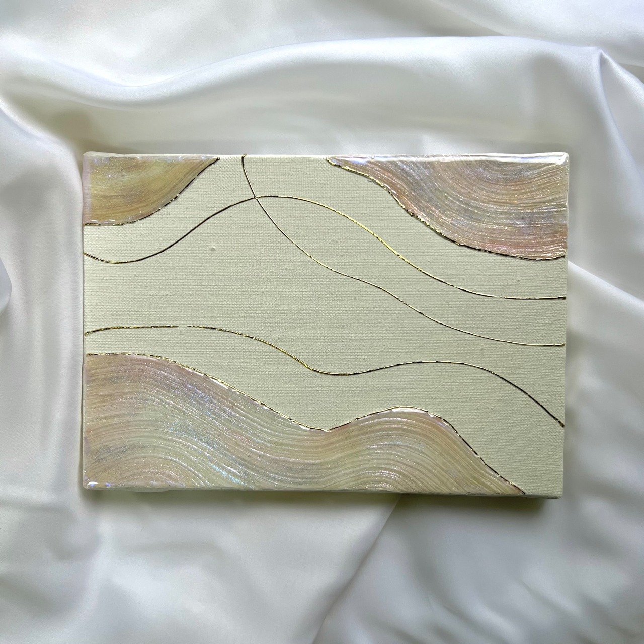 静かに流れる川をイメージした作品。濁流のような日も、澄み切った小川のような日もあるけれど確かに流れて進んでいる。