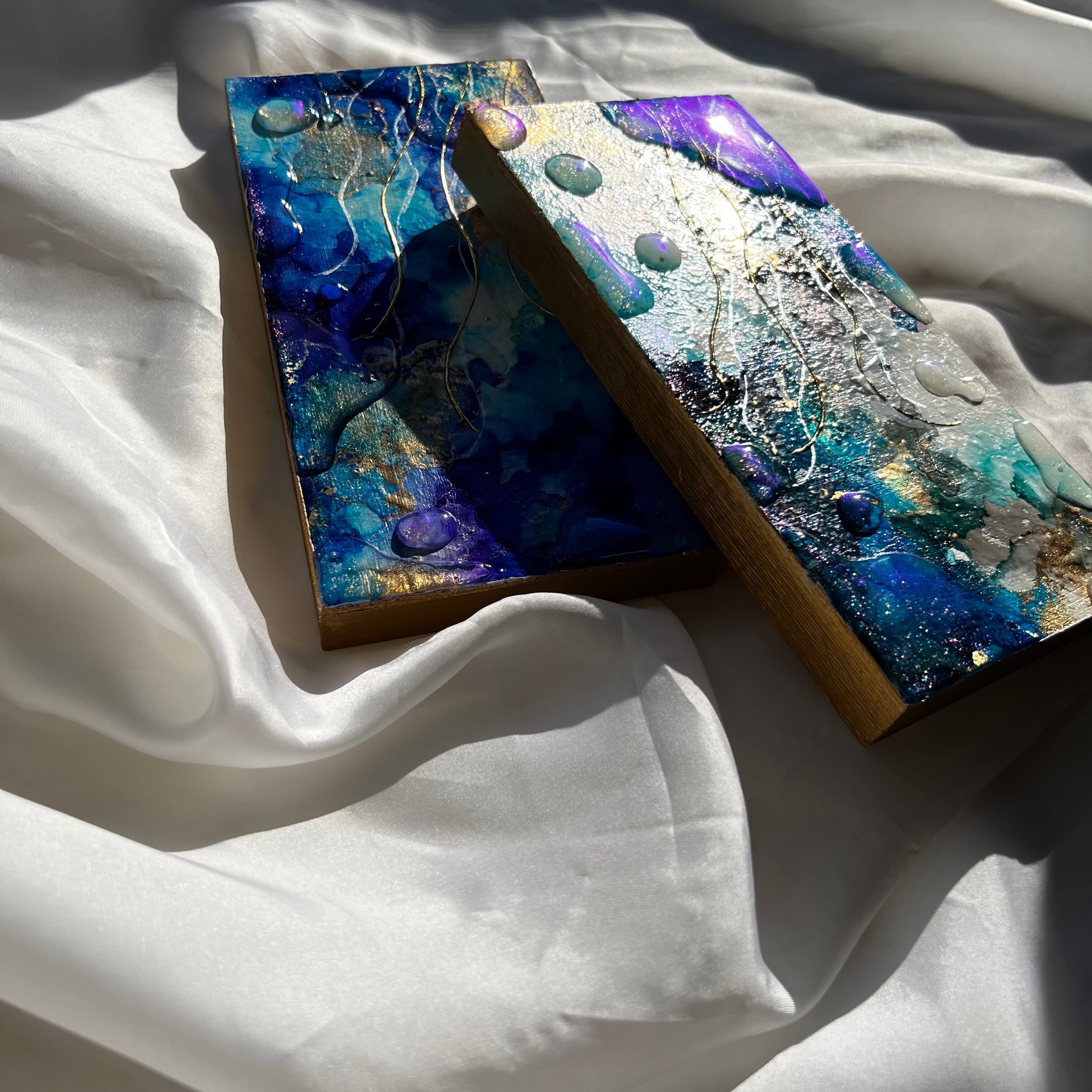 【素材】木、水彩絵の具、アクリル画材、接着剤、アルコールインク、