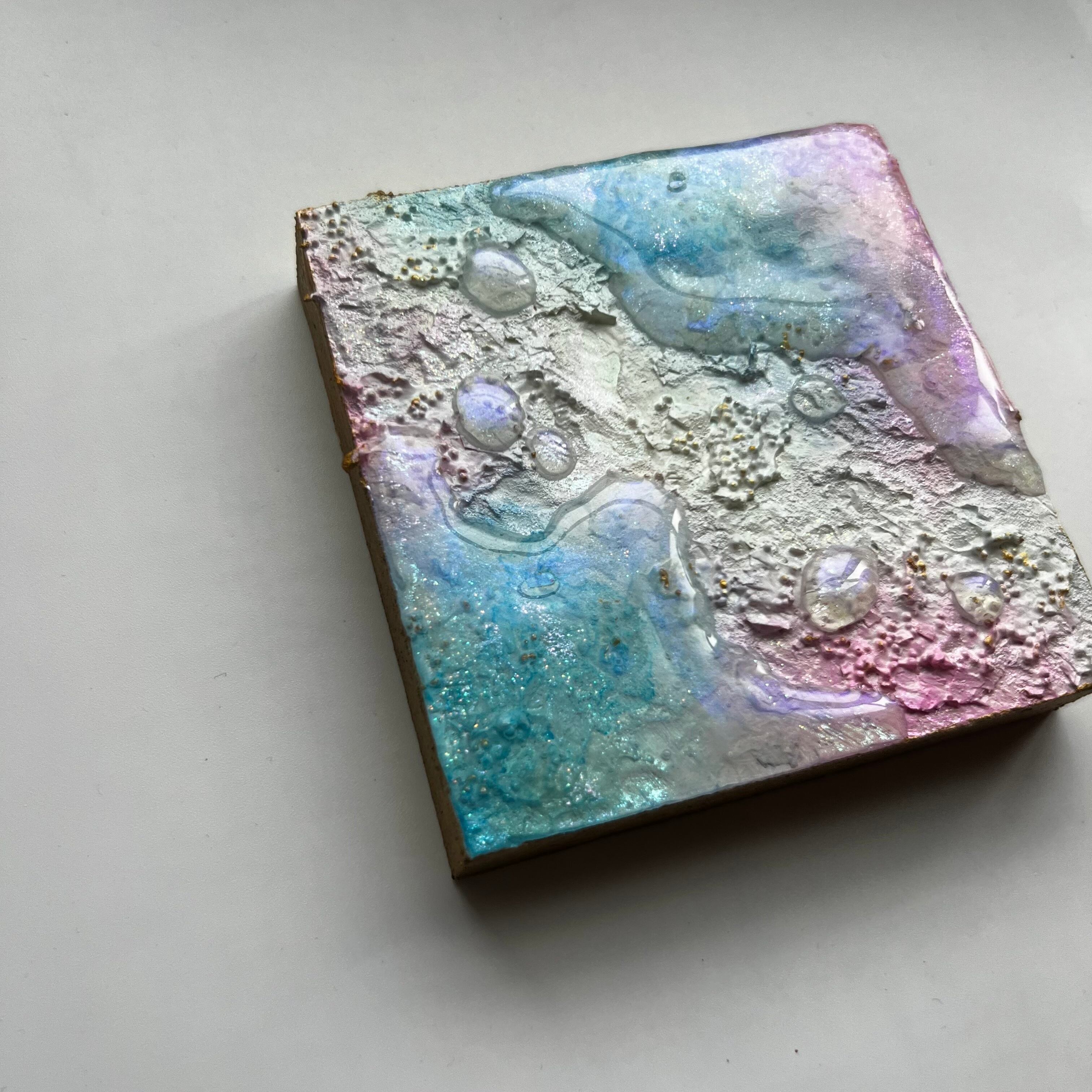 【素材】木、水彩絵の具、ピニャータアルコールインク、アクリル画材、接着剤、レジン