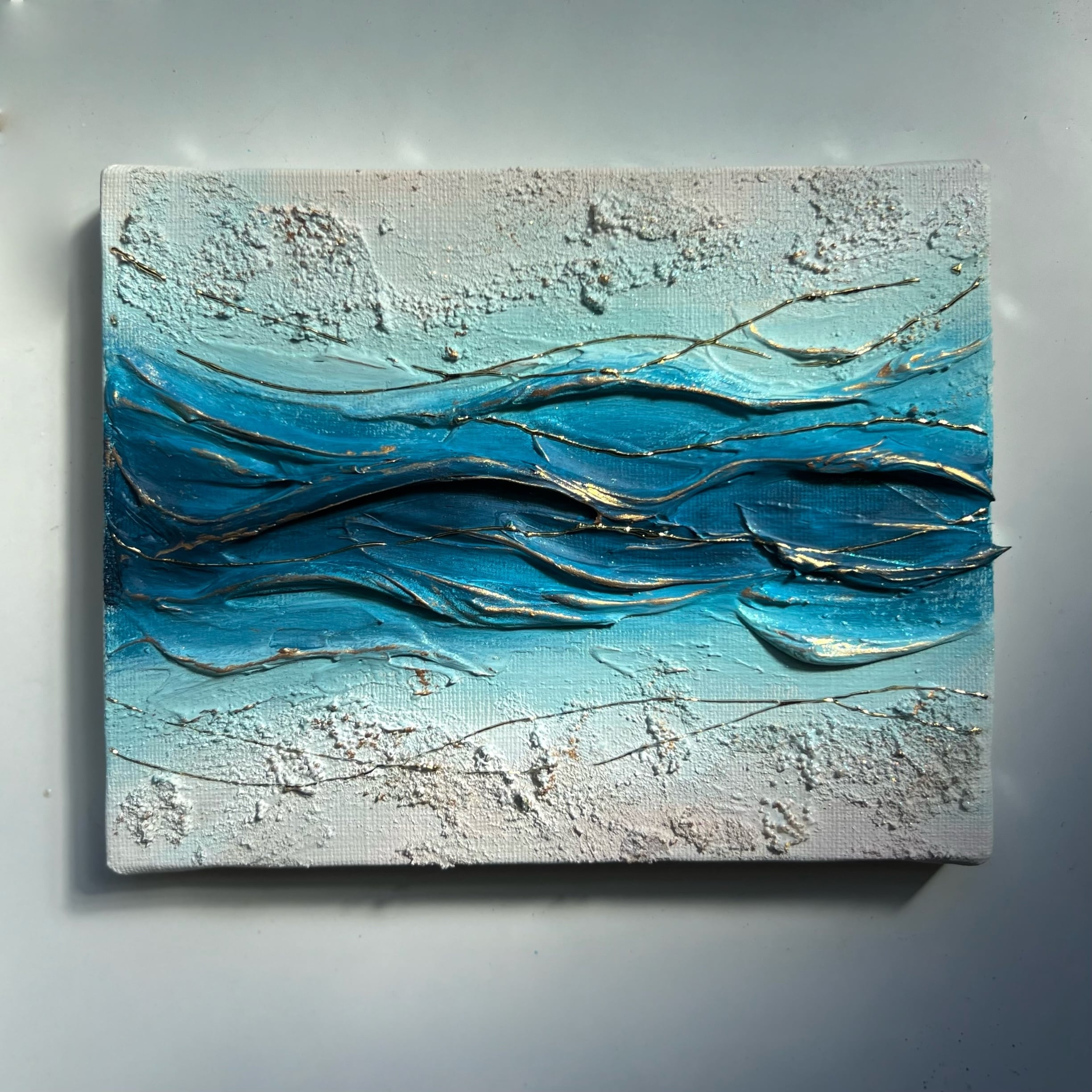 優しいベージュと淡いアクアマリンをベースに、瑠璃色を重ね、爽やかで品のある雰囲気に仕上げています。