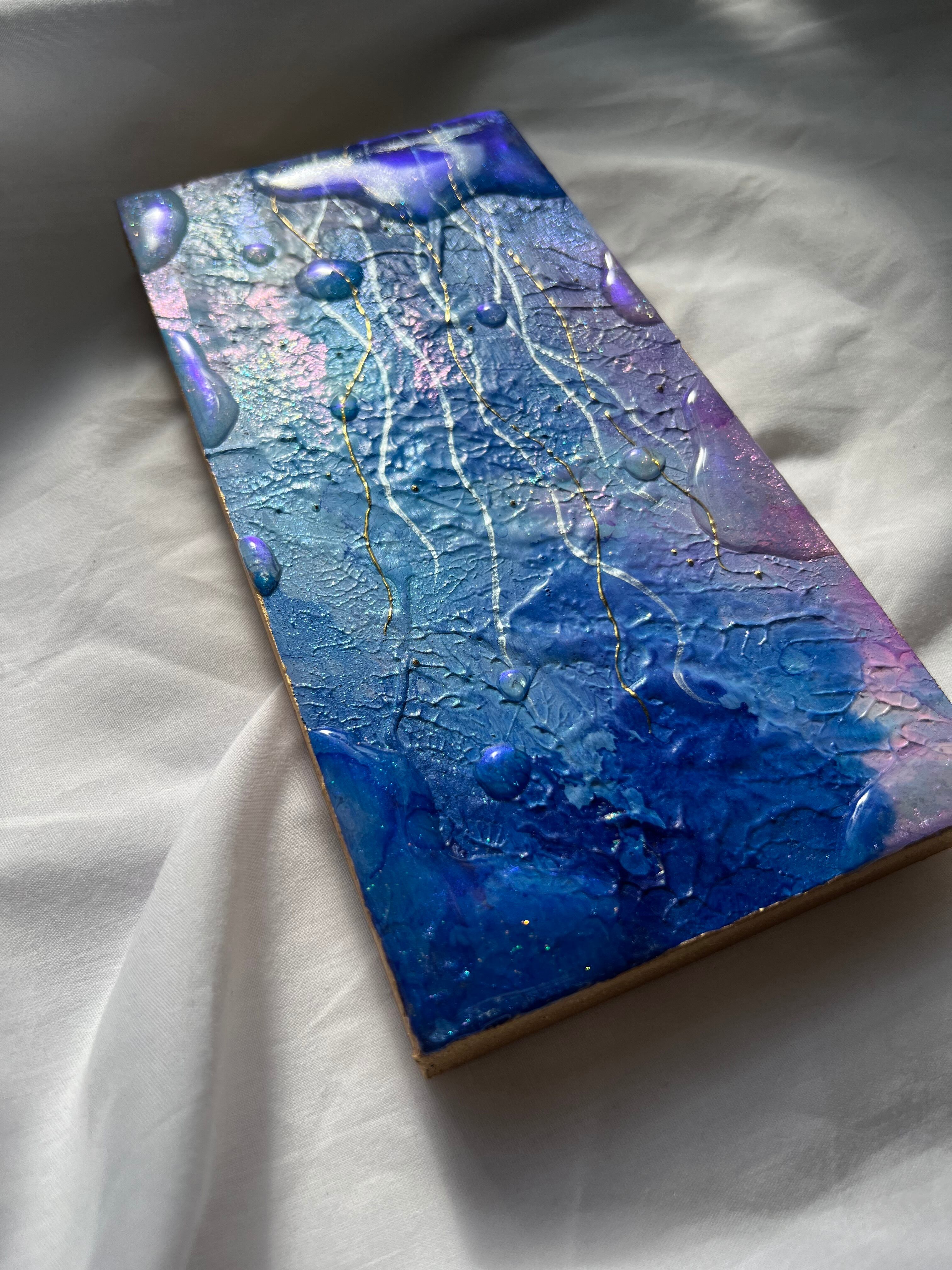 【素材】木、水彩絵の具、アクリル画材、接着剤、アルコールインク、